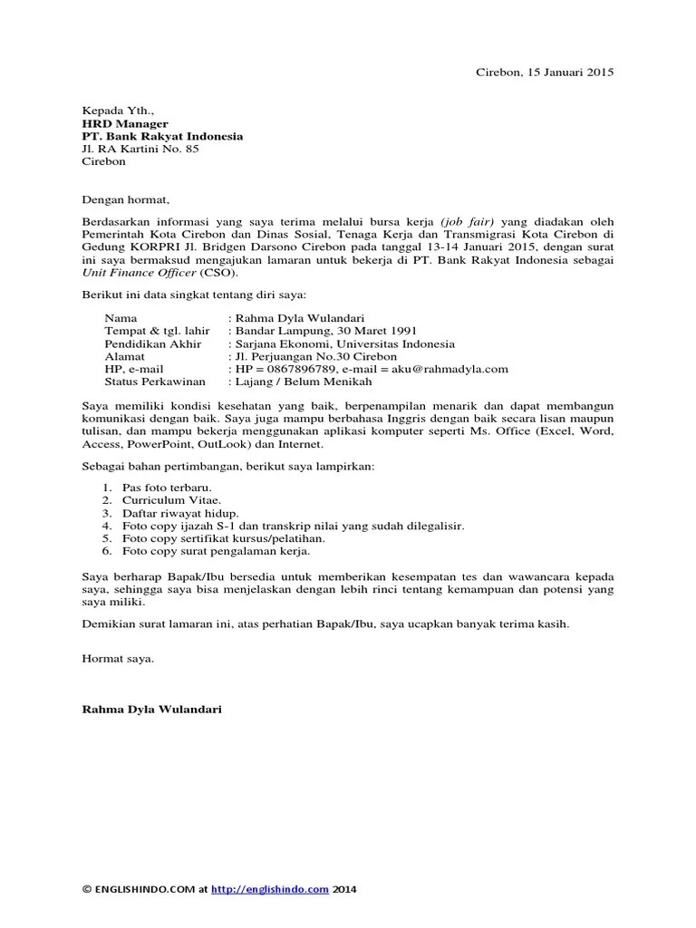 Contoh surat lamaran kerja bank bca 2014 surat pimpinan pendidikan.